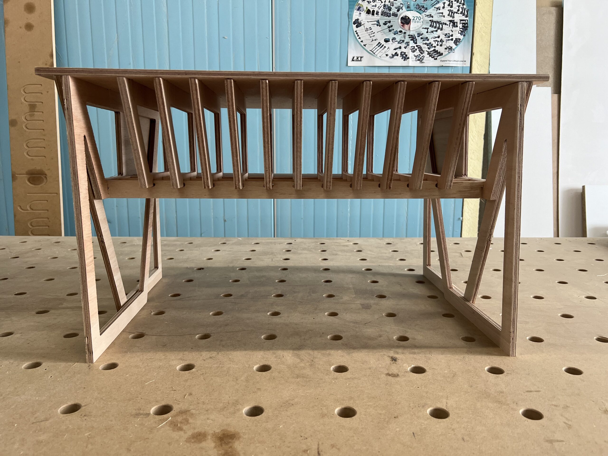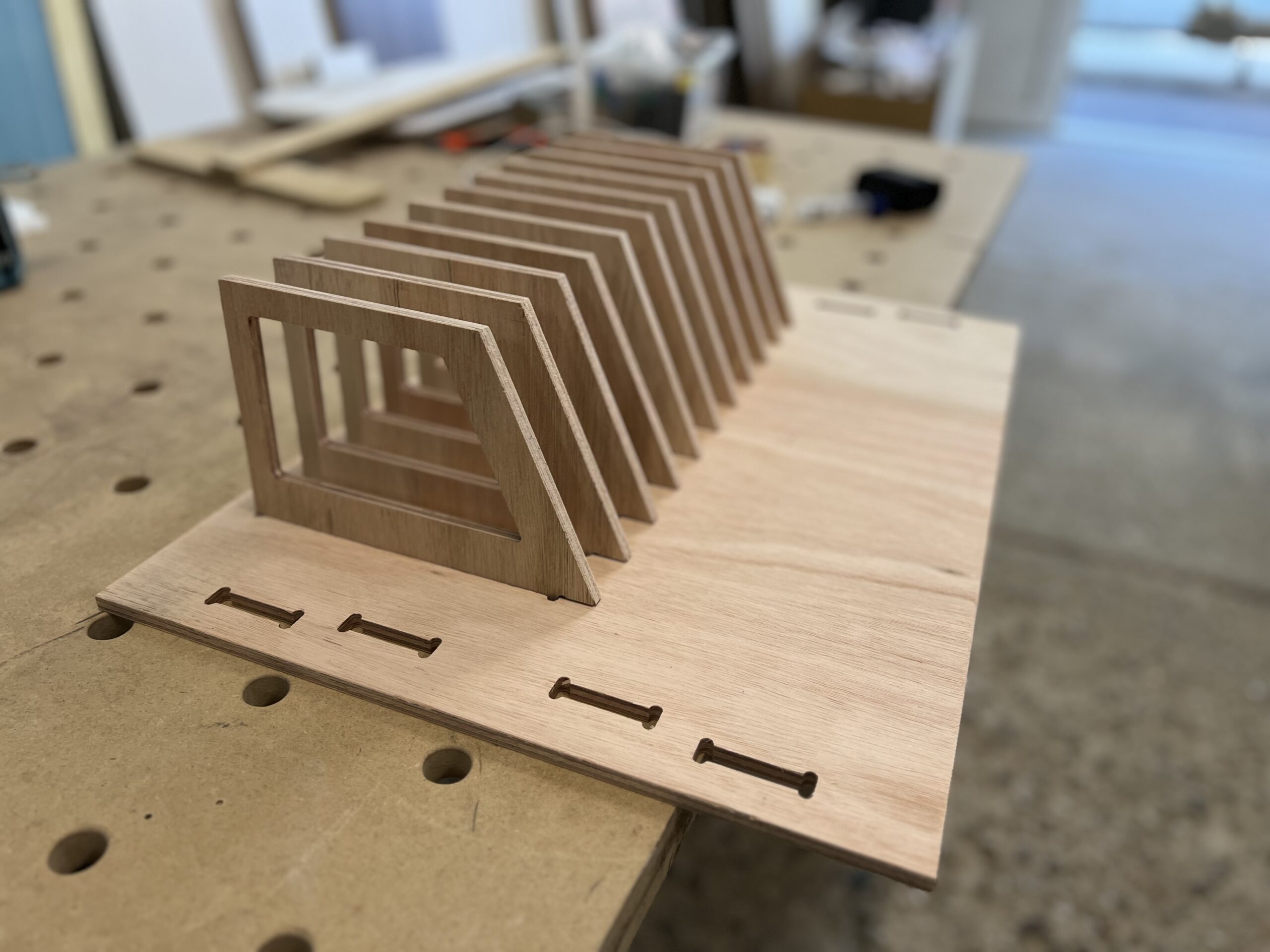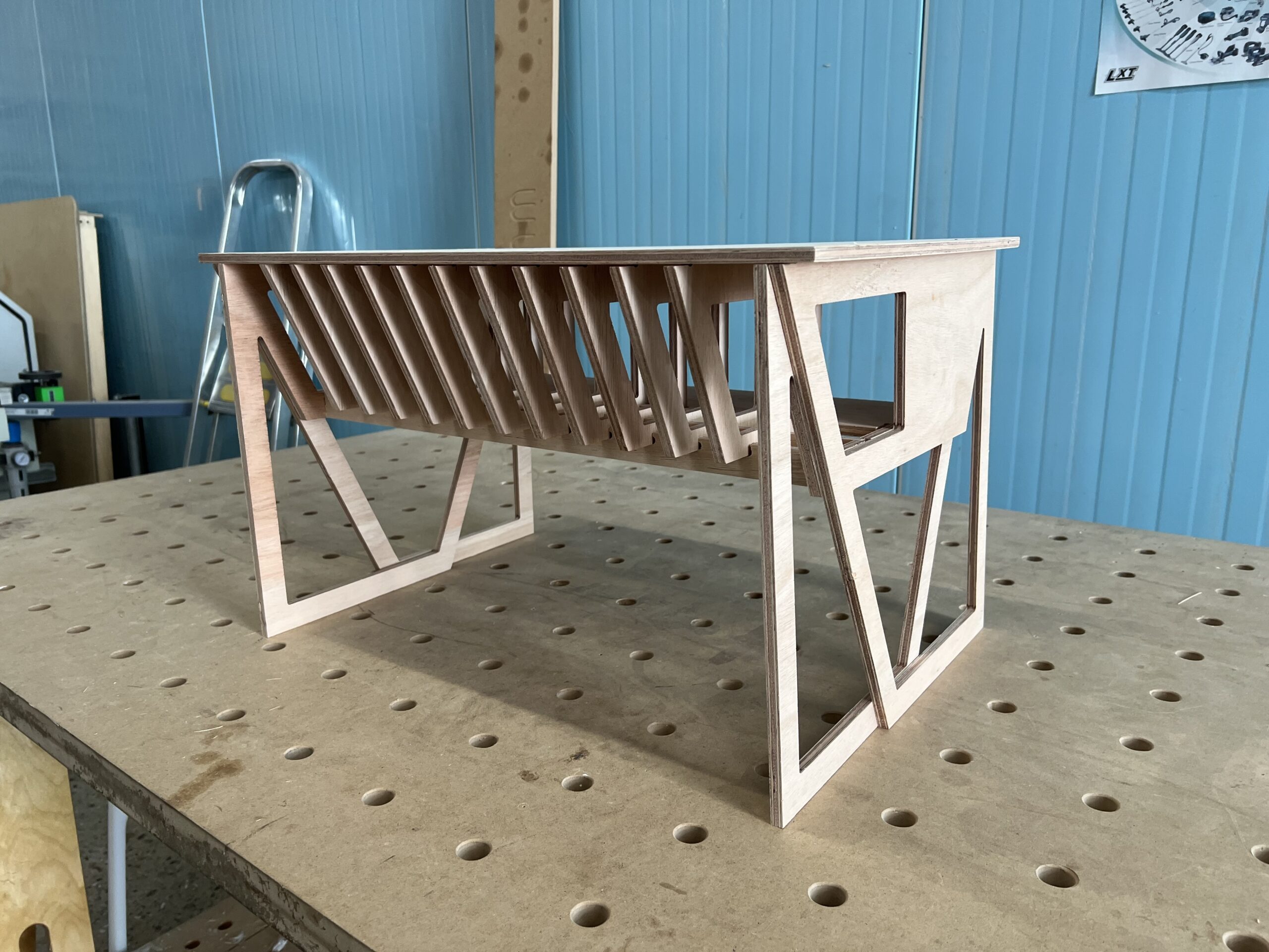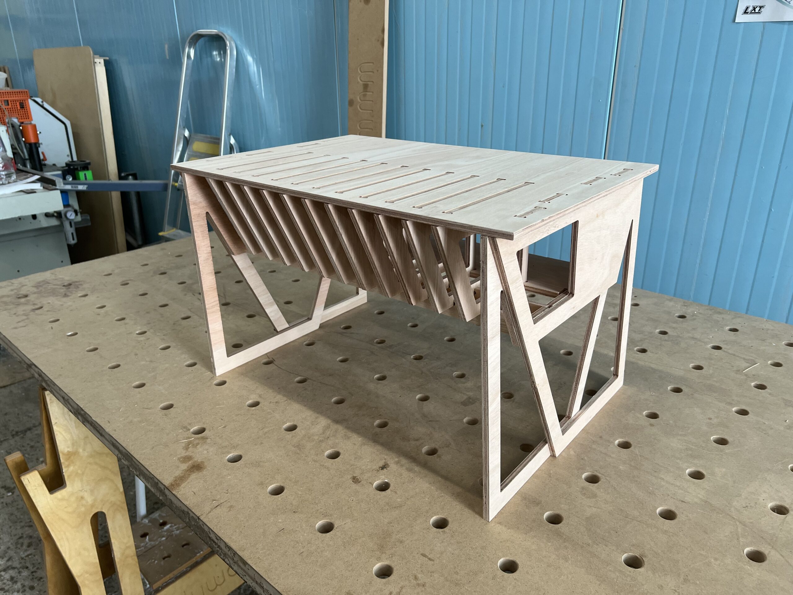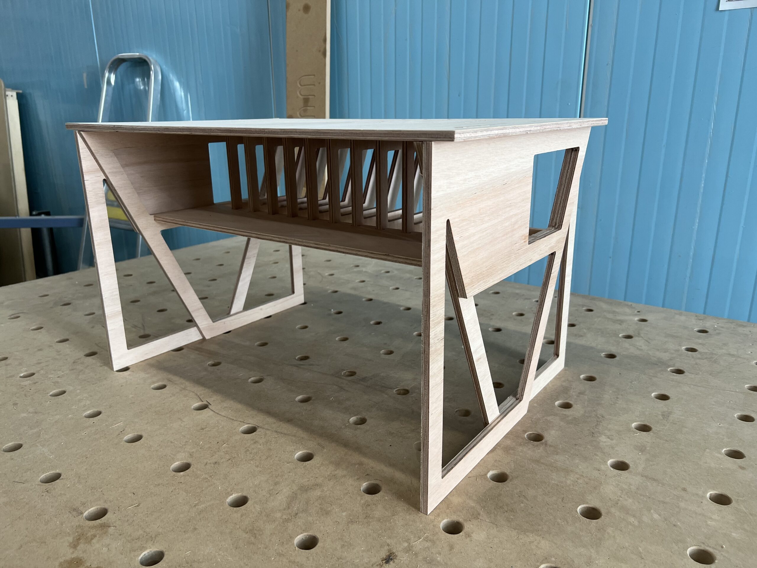 Tervezés vektoros tervezőprogrammal (CAD): Először is, a bútort meg kell tervezni egy számítógépes tervezőprogram segítségével. A program segítségével, a tervező pontos rajzokat készít a bútor alkatrészeiről. Fontos figyelembe venni az anyagot (rétegelt lemez), a marókés méreteit (ezek az eszközök vágják ki az alkatrészeket a lemezből), és az alkatrészek technikai részleteit (méretek, formák, megoldások stb.).