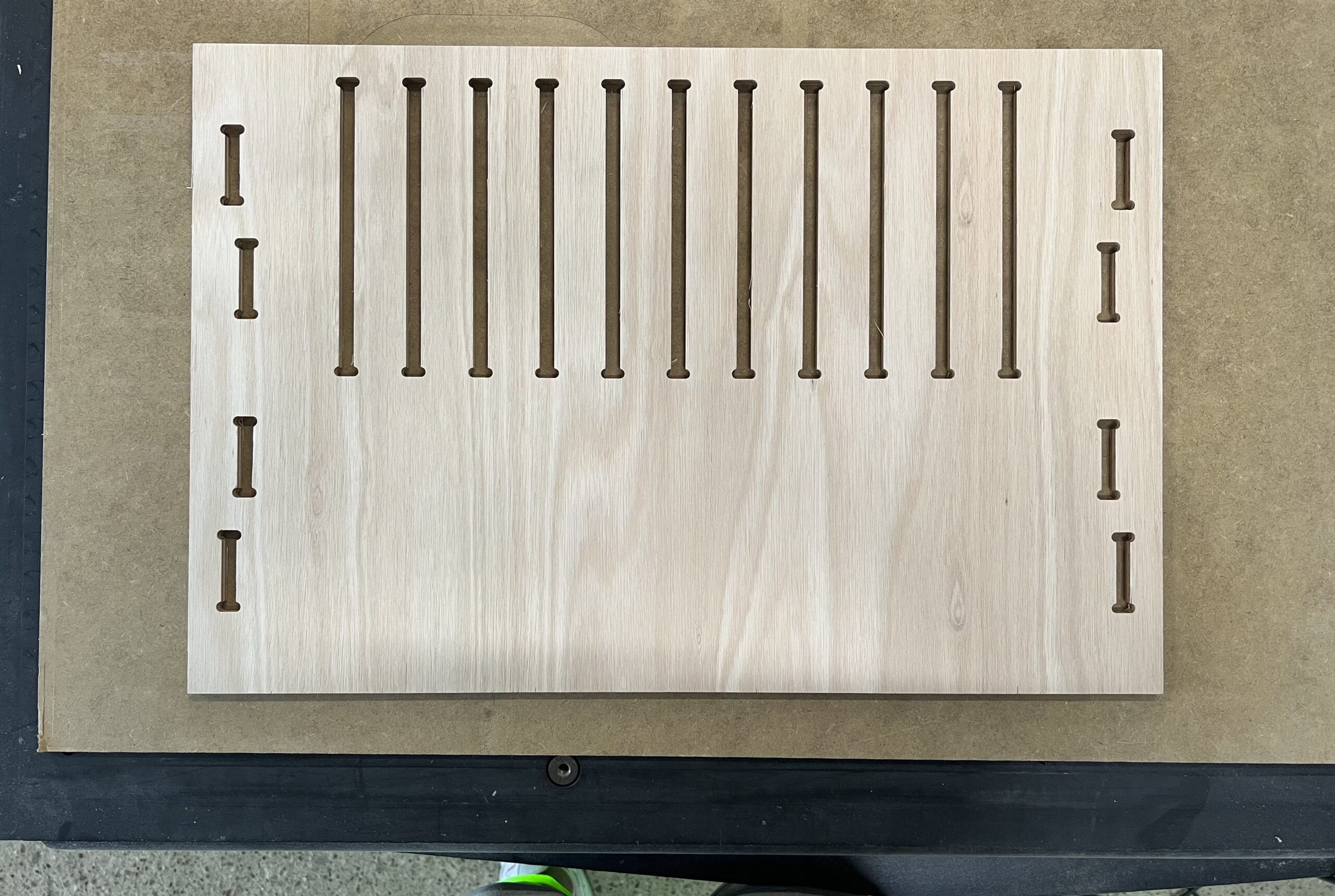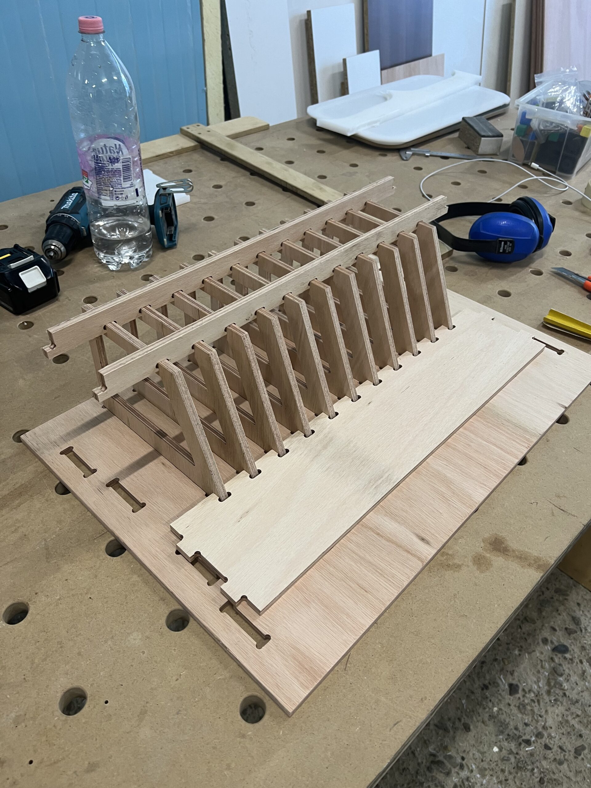 A CNC gépen történő kivágás: Az utolsó lépés az, hogy a tervezett és előkészített adatokat betöltjük a CNC gépbe. A CNC (számítógép-vezérelt) gép automatikusan elvégzi a vágást a beállításoknak megfelelően. A rétegelt lemez lapot a gépbe helyezik, és a gép a programozott utasítások alapján kivágja a szükséges alkatrészeket. Ez a folyamat rendkívül pontos és gyors, így a bútor minden alkatrésze tökéletesen illeszkedik majd egymáshoz.